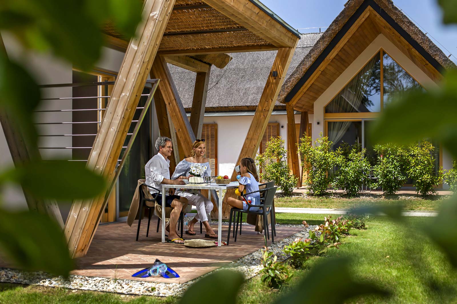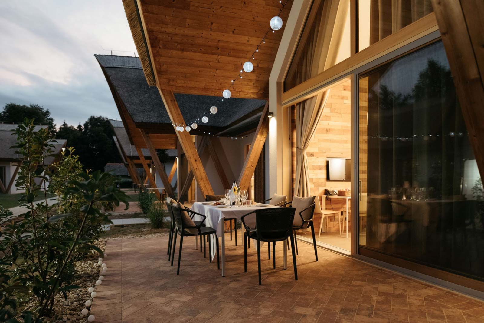 Predstavljajte si prostrana polja in livade, kjer vas prebudi oglašanje štorkelj in brenčanje čebel ter brbotanje črne termo-mineralne vode. Jutro pozdravite s kavico na terasi pred leseno hiško. Otroci se medtem lovijo med drevesi na bližnjem travniku in že komaj čakajo, da se odpravite v vodni park, ki je le za lučaj oddaljen od hišk. Tako se začne počitniško jutro v novih hiškah v Prekmurski vasi Ajda. Očarljive lesene hiške so navdahnile cimprače, tipične prekmurske hiške, krite s slamo. Nove hiške so krite s trstiko, za razliko od cimprač pa je v njih veliko svetlobe in udobja. Dnevni prostor s teraso v pritličju je kot nalašč za čudovite družinske trenutke. Popoldne lahko v goste povabite še prijatelje in si pripravite prekmurski piknik. Ko se dan umiri, se na terasi priležeta dobra knjiga in kozarček prekmurske kapljice. Po doživetjih polnem dnevu pa se boste v zgornjem nadstropju zazibali v prijeten spanec na blazinah, polnjenih z ajdovimi luščinami.